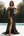 Black A Line Cold Shoulder Printed Floral Long Prom Dress with Slit