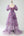 A Line Tiered Purple Printed Tea-Length Long Prom Dress