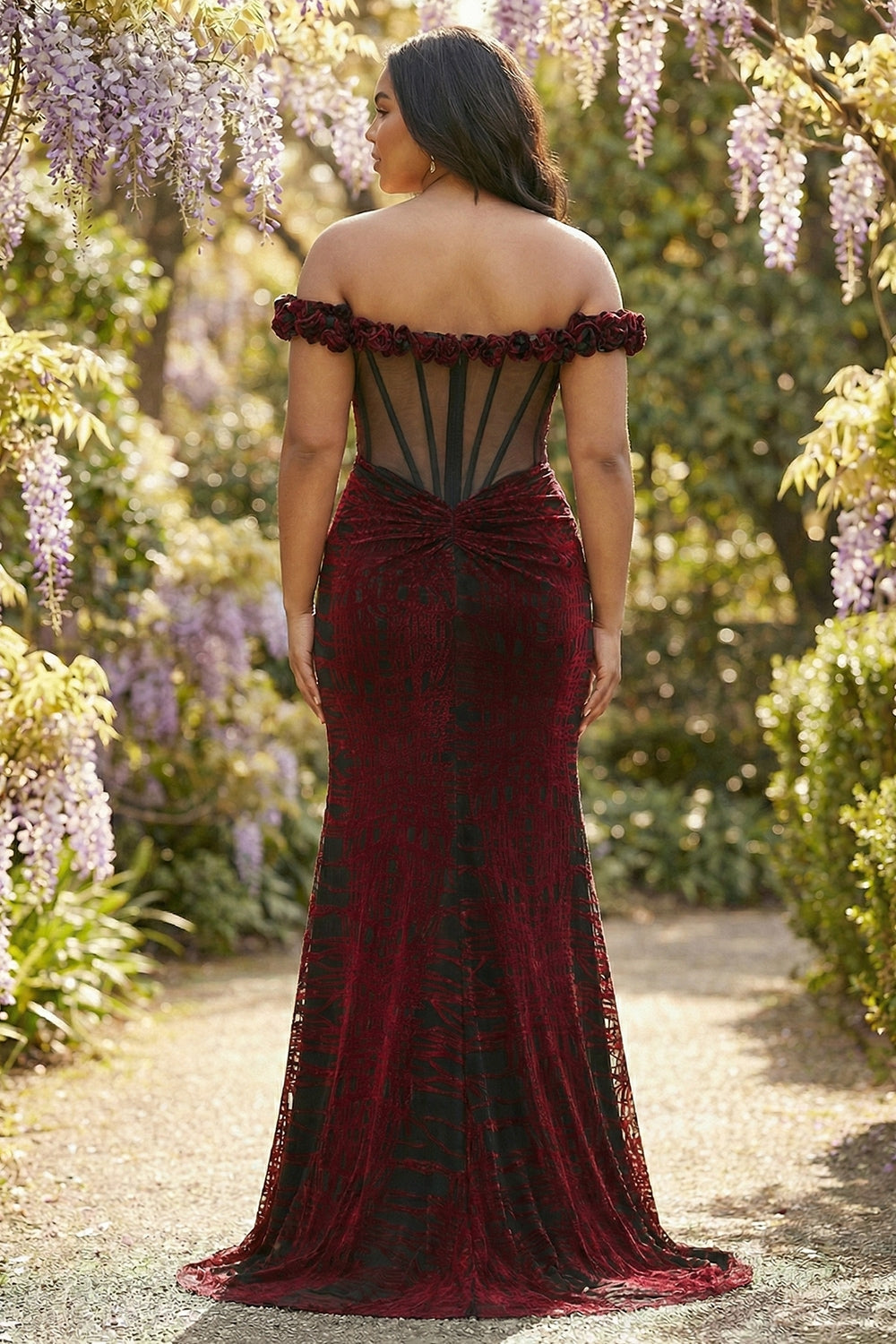 Black Red Mermaid Off the Shoulder Corset Ruched Long Prom Dress with Slit