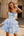 White Blue Floral Corset A-line Strapless Tiered Short Prom Dress