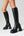 Black PU Leather Platform Chunky Block High Heel Boots with Pink Hearts