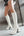 White Wide Calf Pointed Toe Knee High Chunky Heel Boots