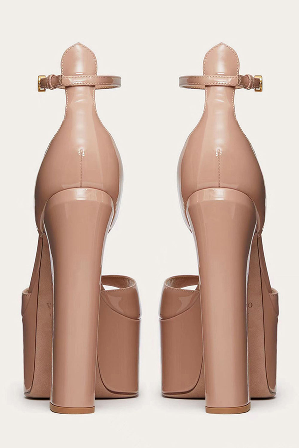 Elegant Black Chunky Open Toe Prom High Heels Pump with Ankle Strap