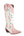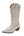 White Embroidered Knee High Wide Calf Chunky Heel Cowgirl Boots