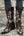 Retro Black Fringe Belt Buckle Chunky Low Heel Cowgirl Boots