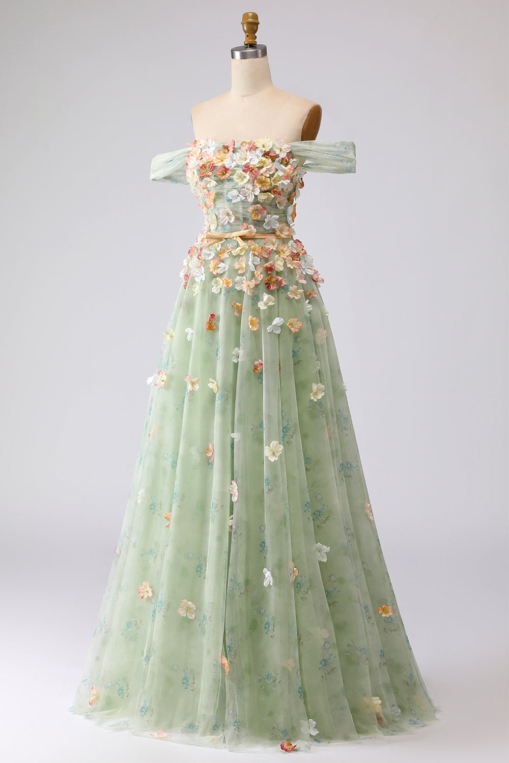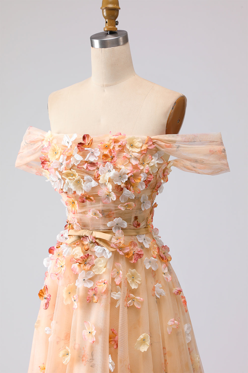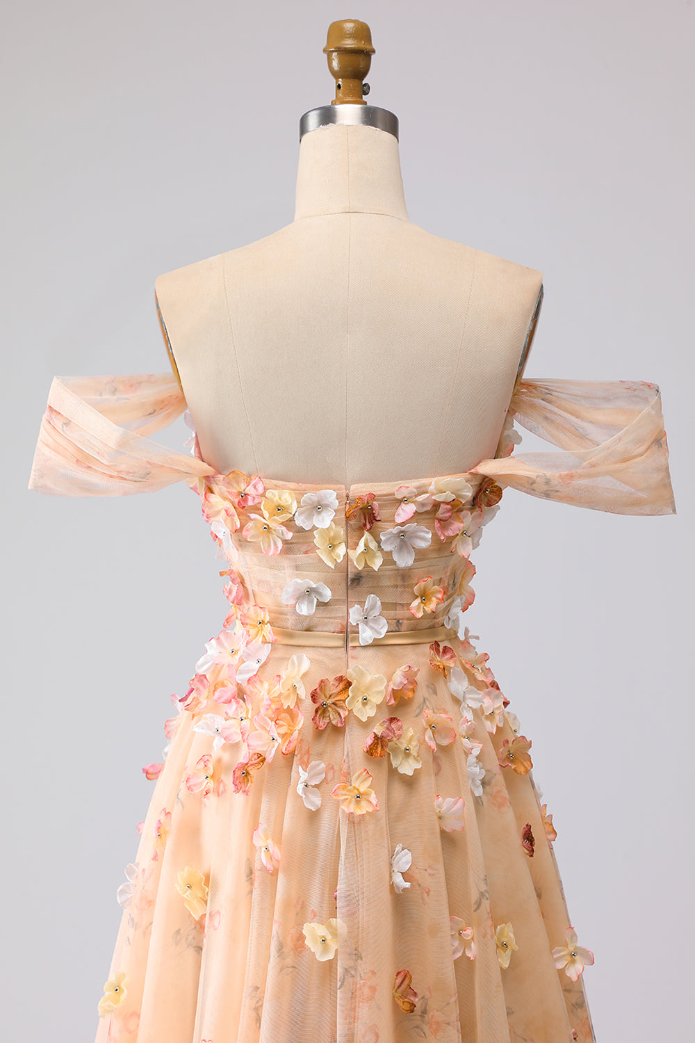 Champagne Off The Shoulder Floral A-Line Convertible Long Prom Dress