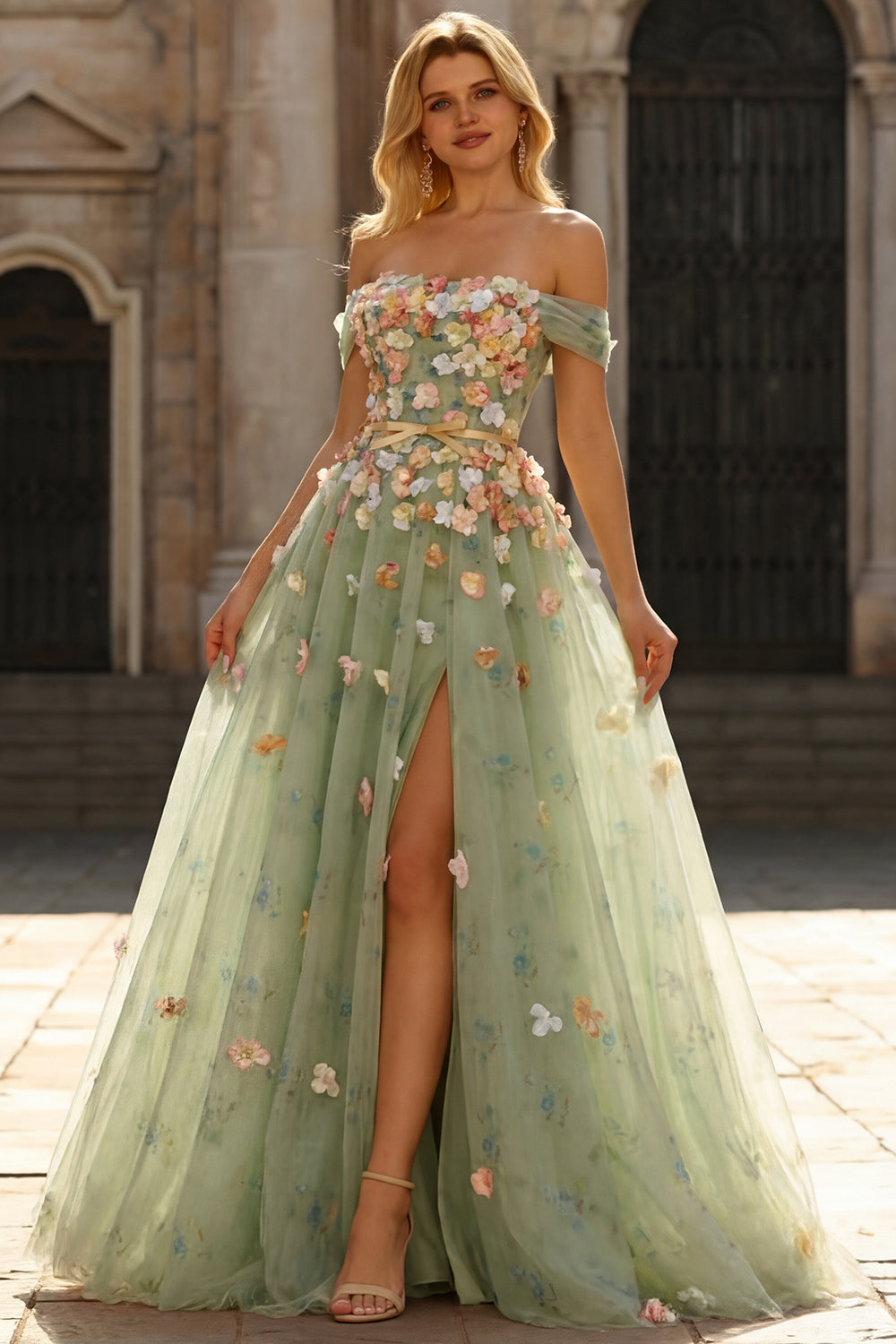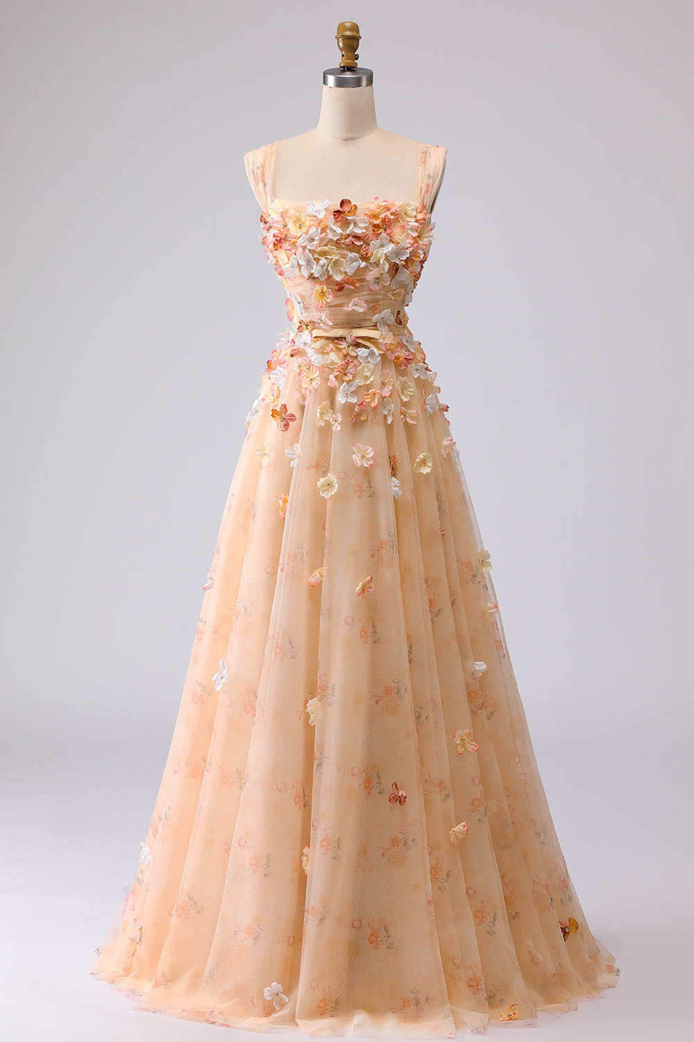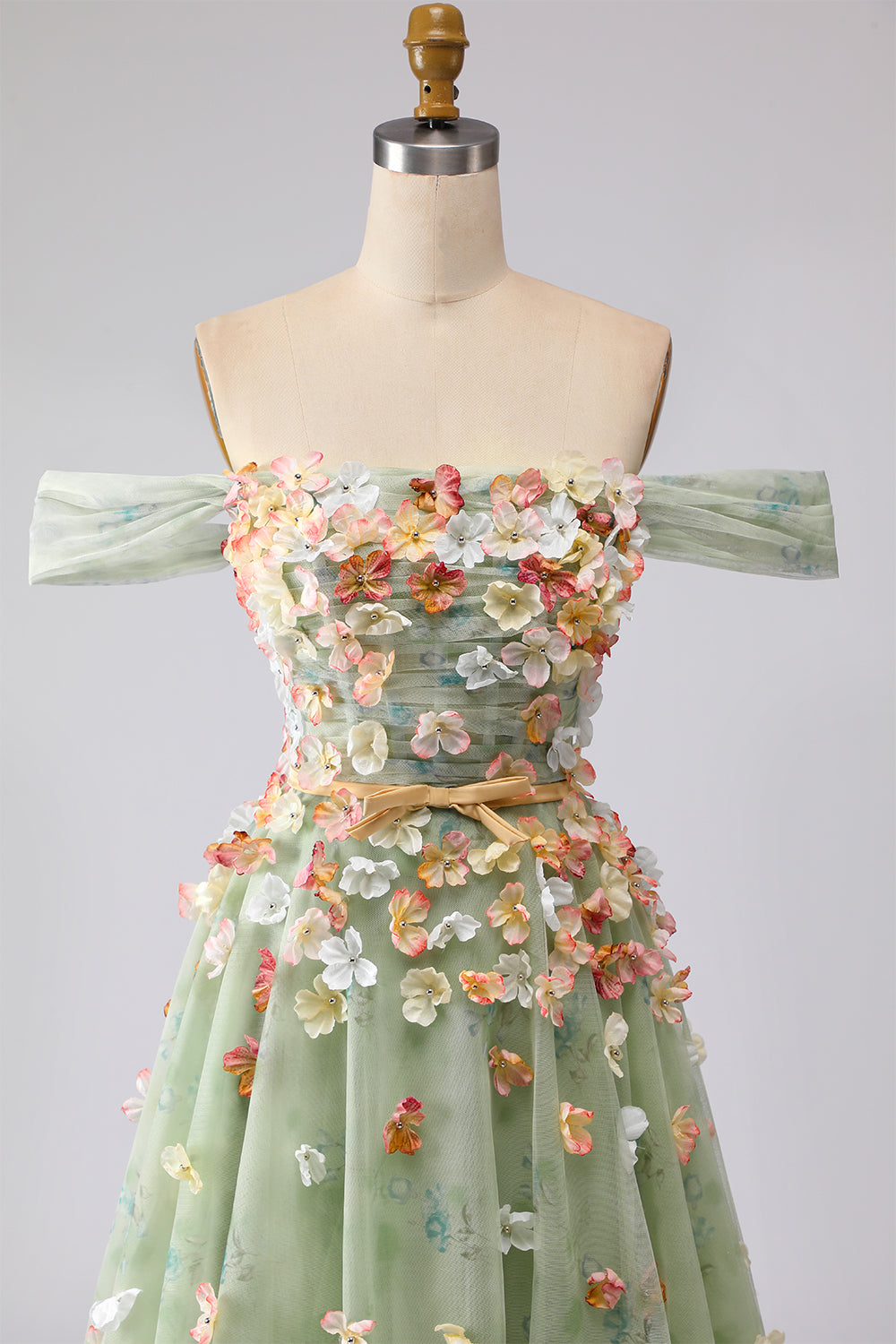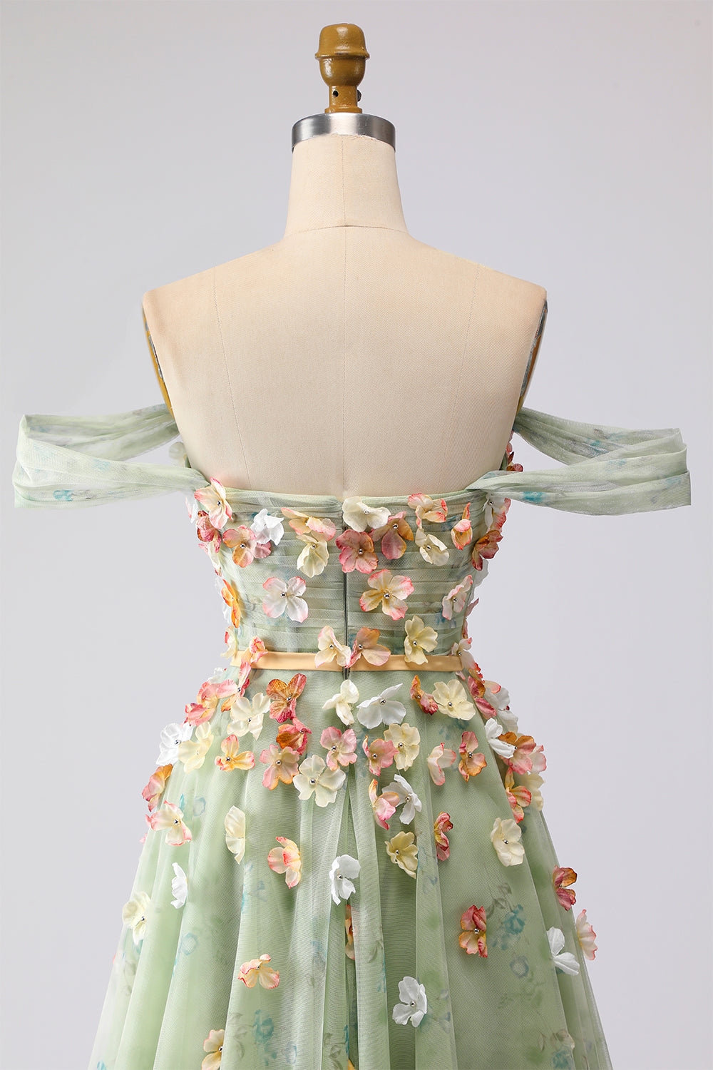Champagne Off The Shoulder Floral A-Line Convertible Long Prom Dress