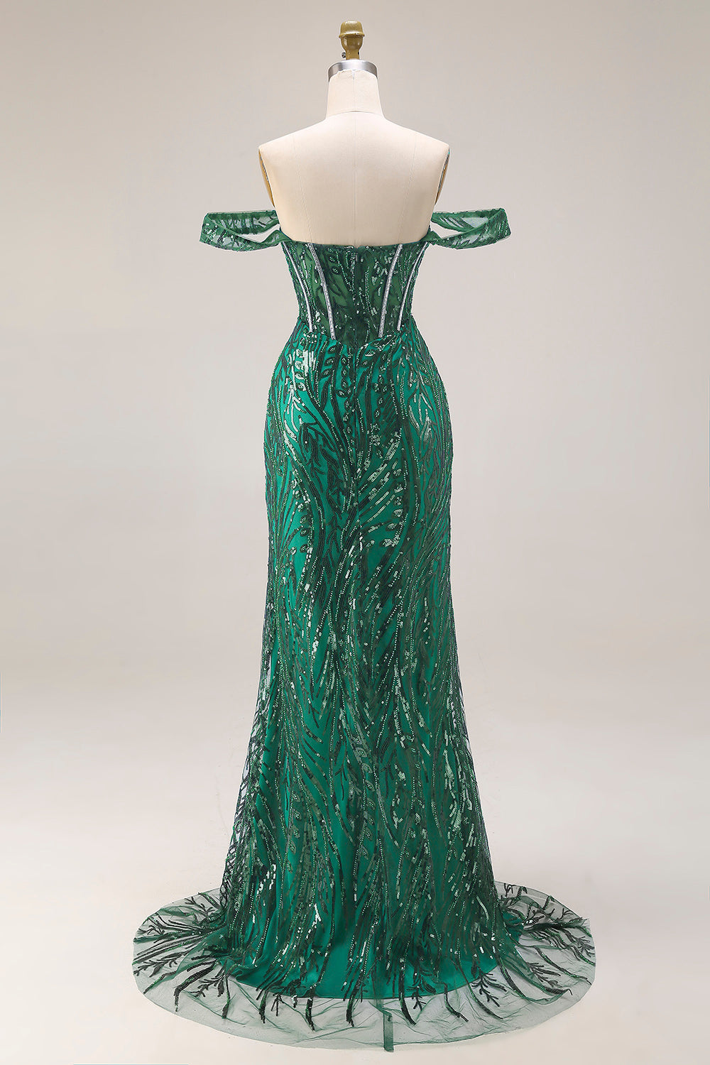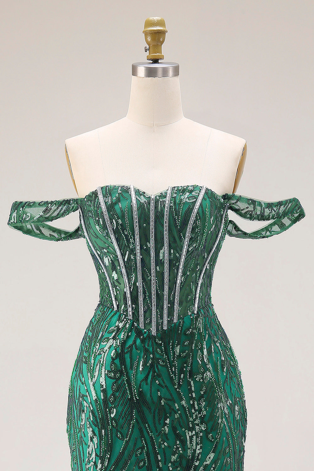 Dark Green Mermaid Off The Shoulder Corset Sequin Long Prom Dress with Beading