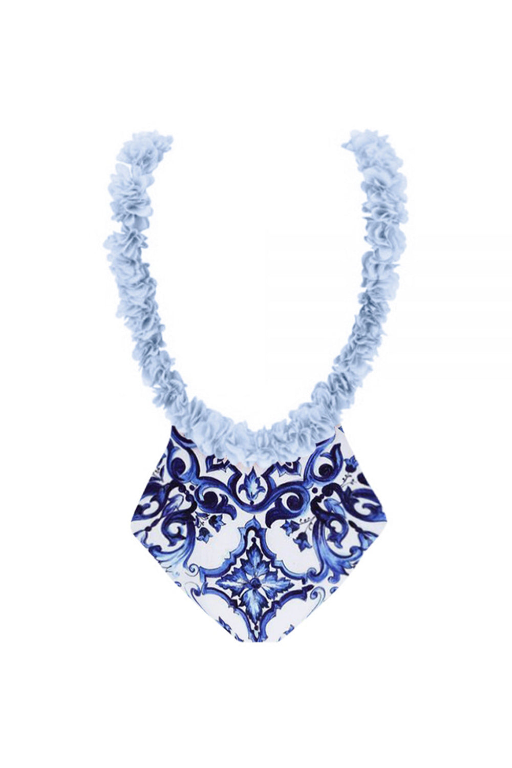 2 Piece Blue Ruffled Print Swimsuit with Cover Up
