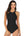 Jewel Neck Black One Piece Swimsuit with Shorts