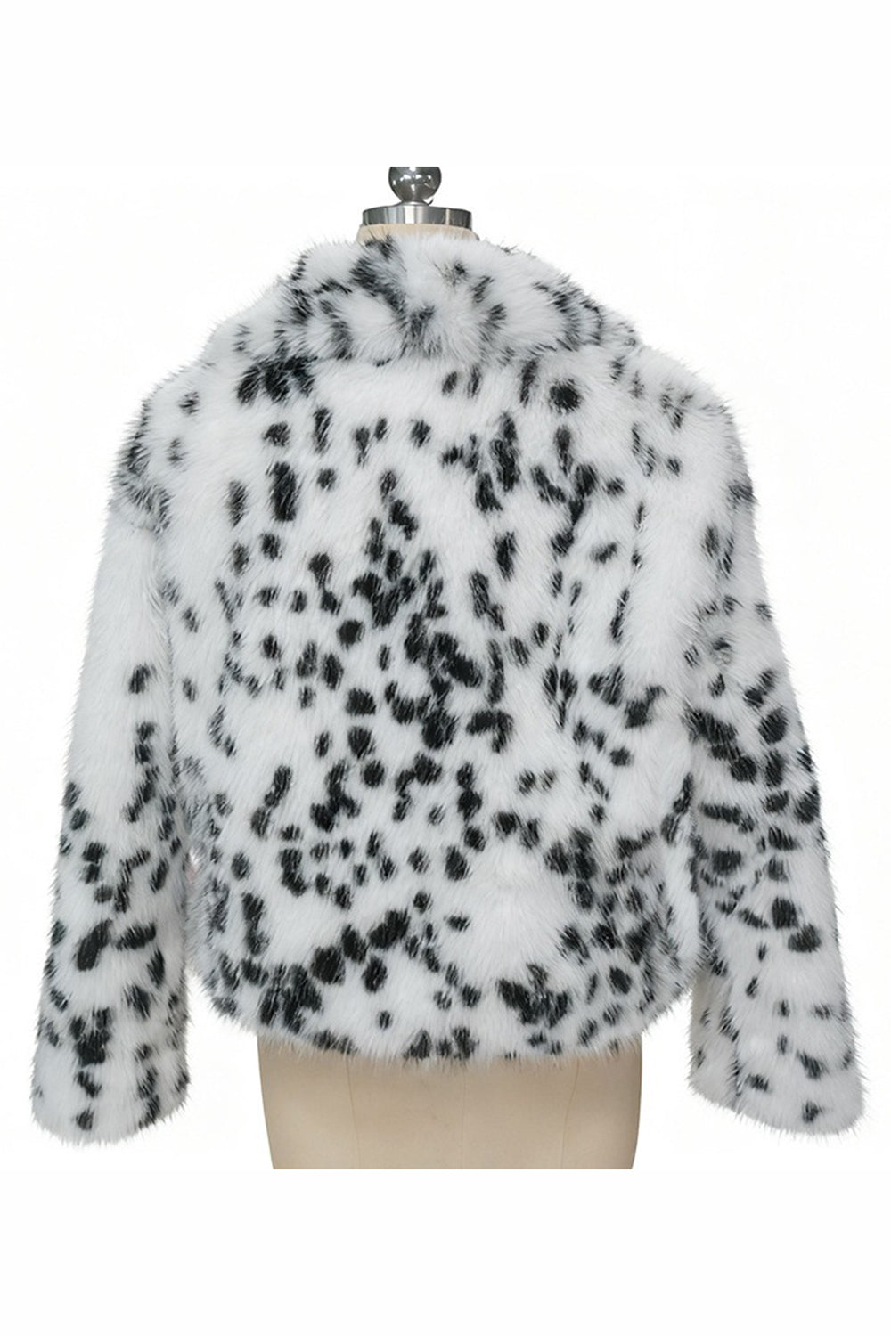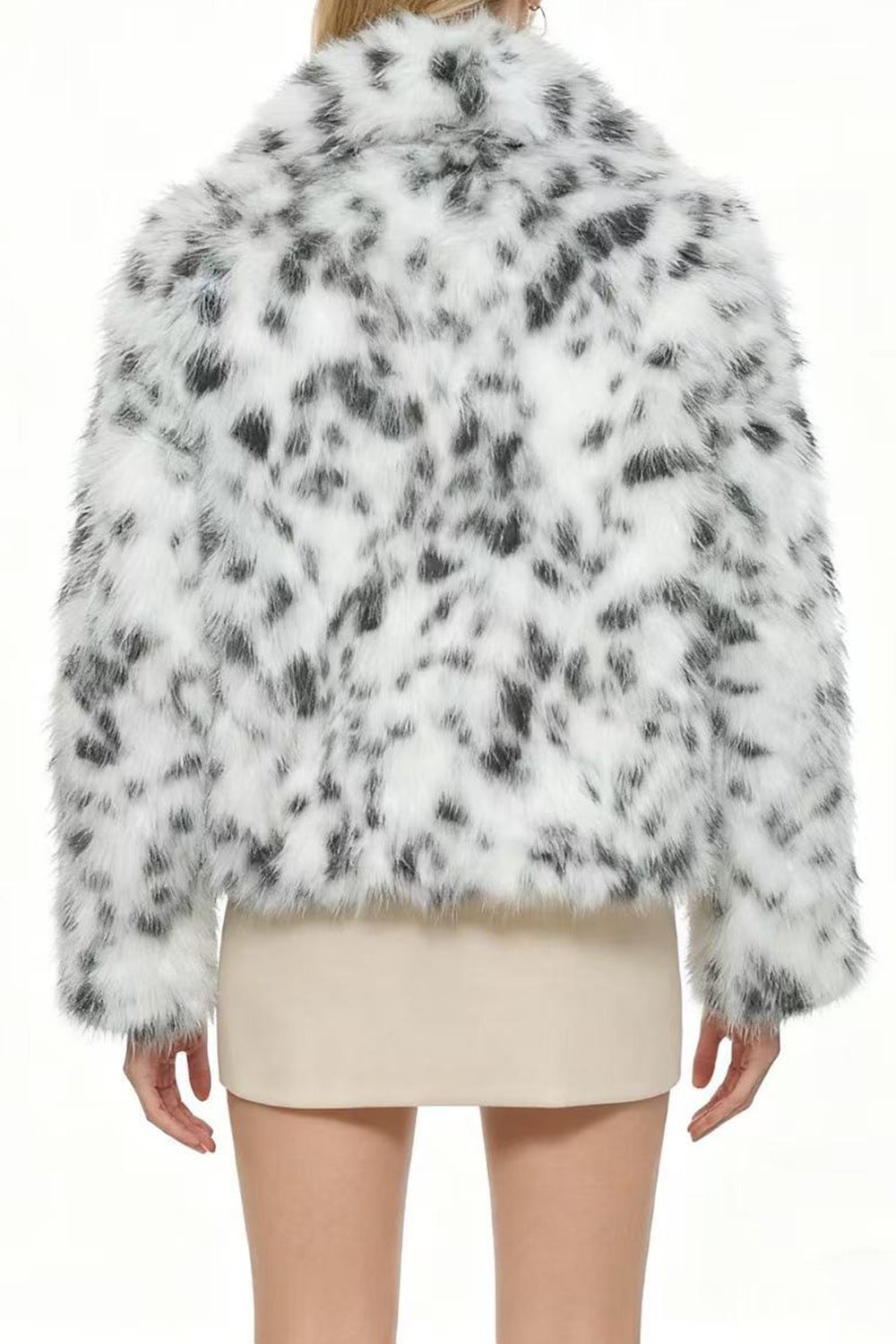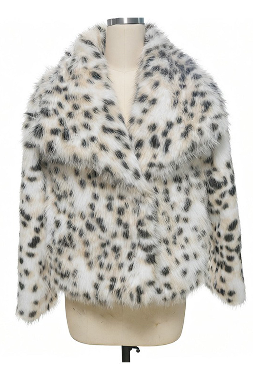 Apricot Leopard Print Faux Fur Women Coat with Long Sleeves