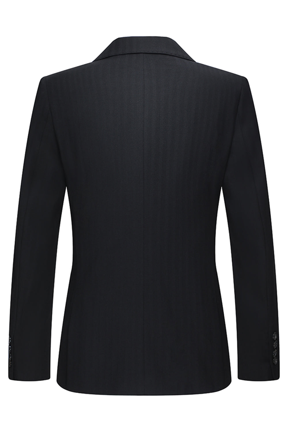 Black 3 Piece Peak Lapel Double Breasted Men's Business Suits