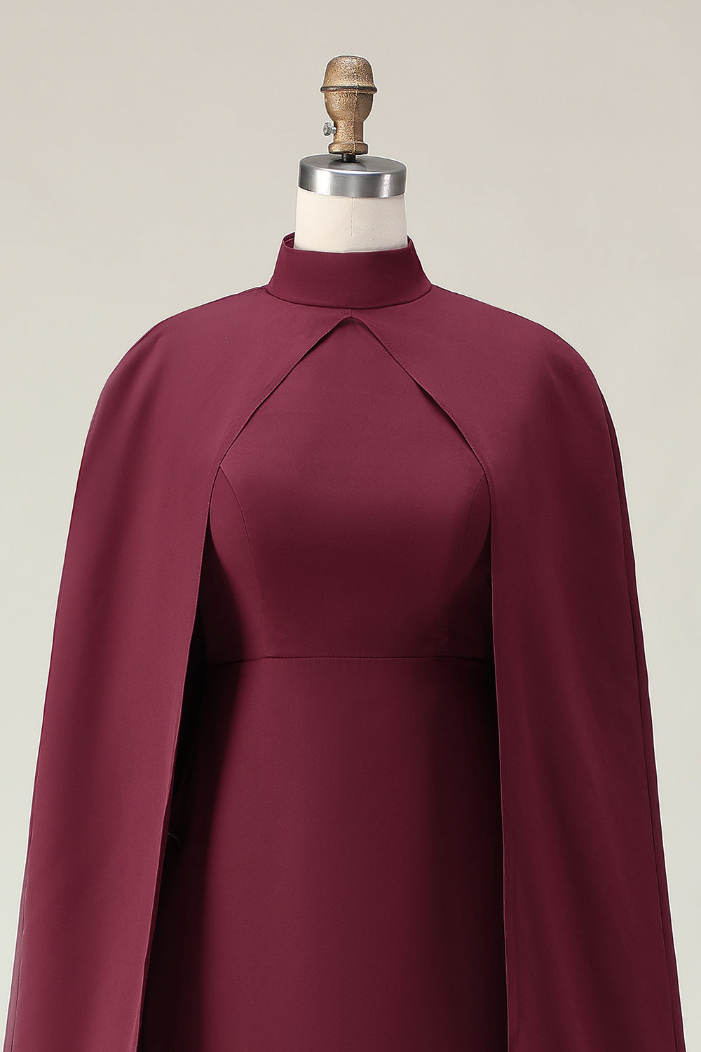 Burgundy Sheath High Neck Midi Formal Dress with Cape