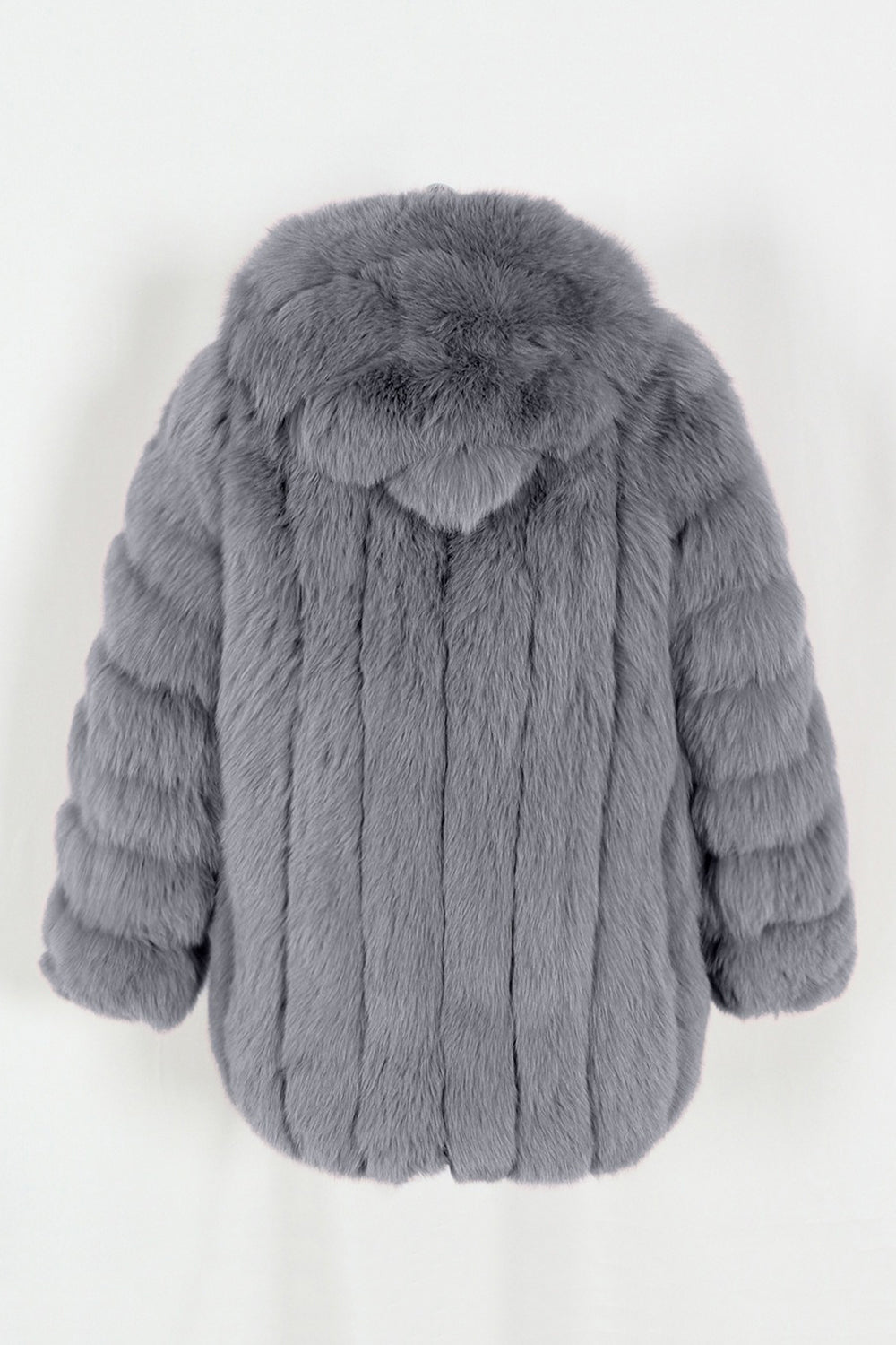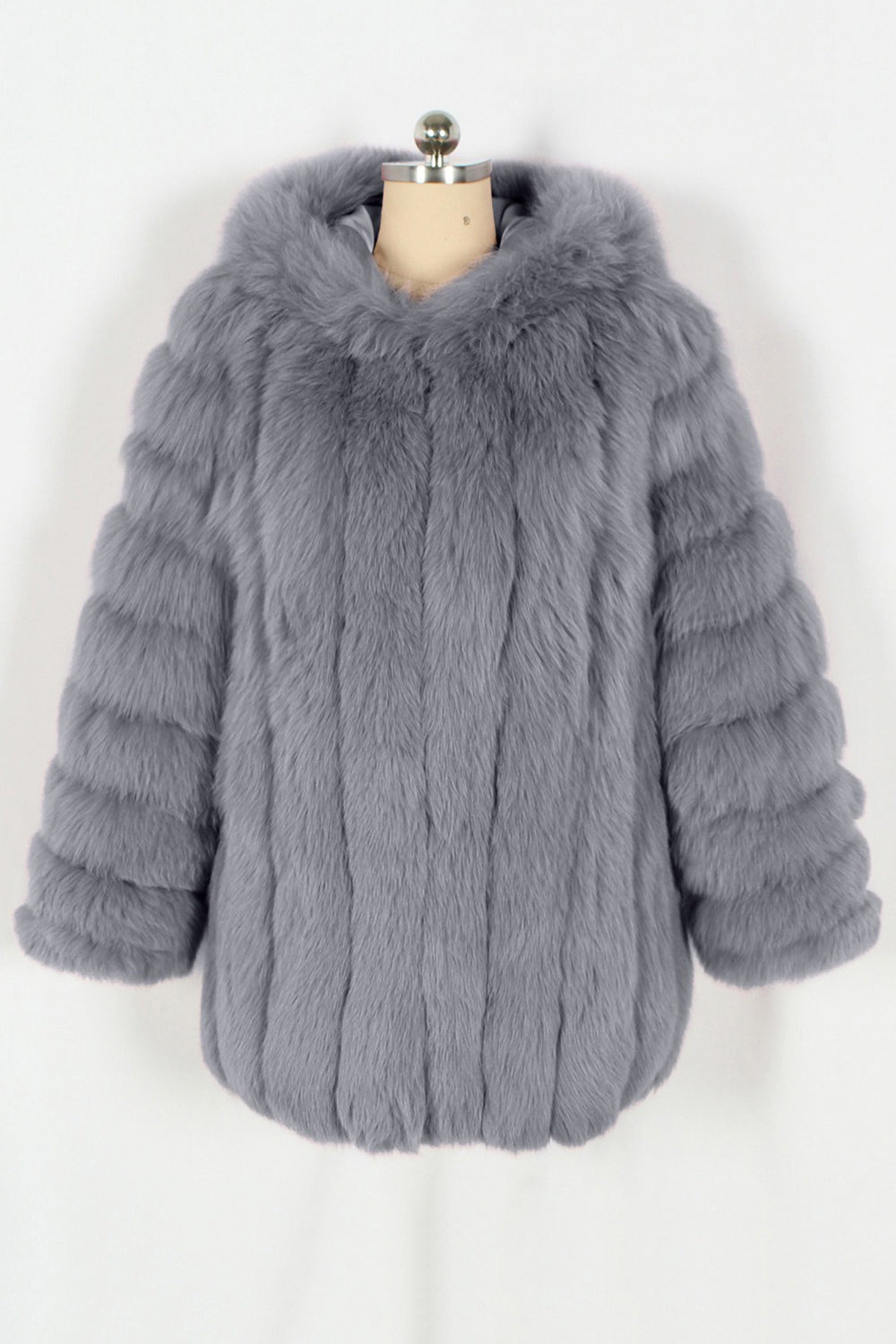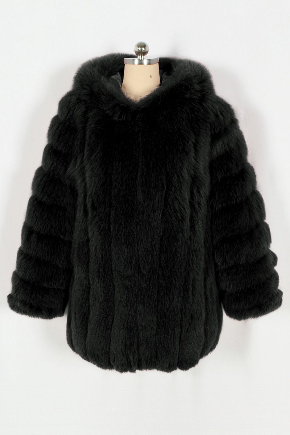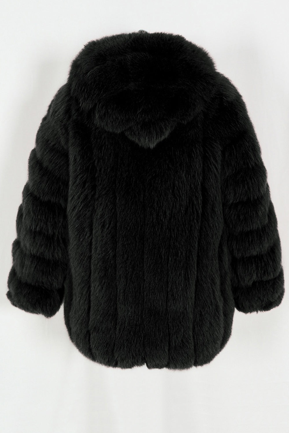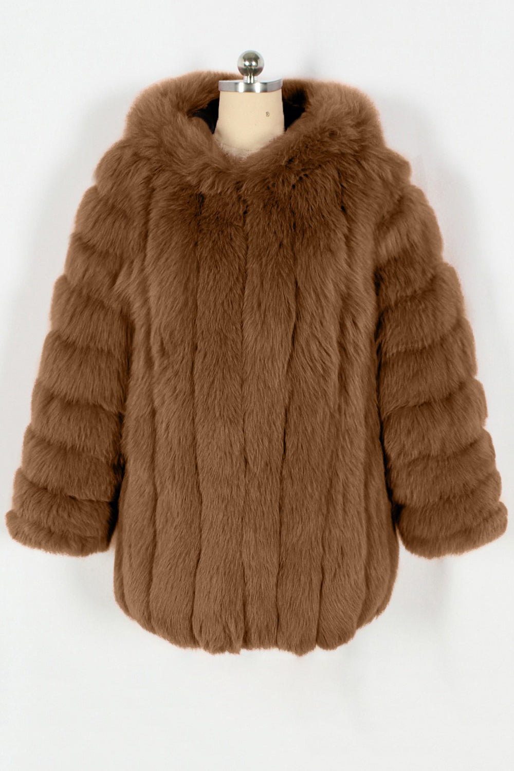 Coffee Puffy Long Sleeve Hooded Faux Fur Women Coat