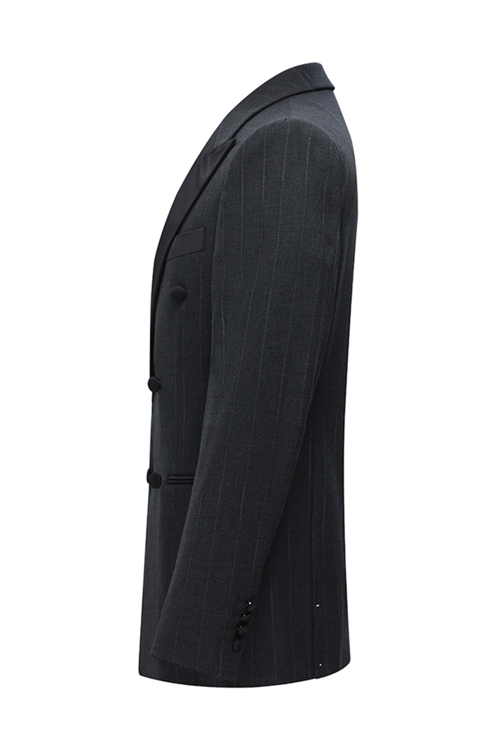 Dark Grey 2 Piece Peak Lapel Double Breasted Striped Men's Suits
