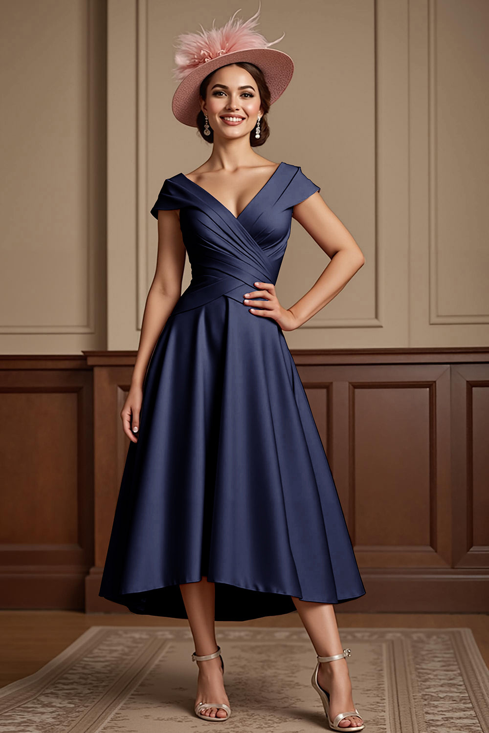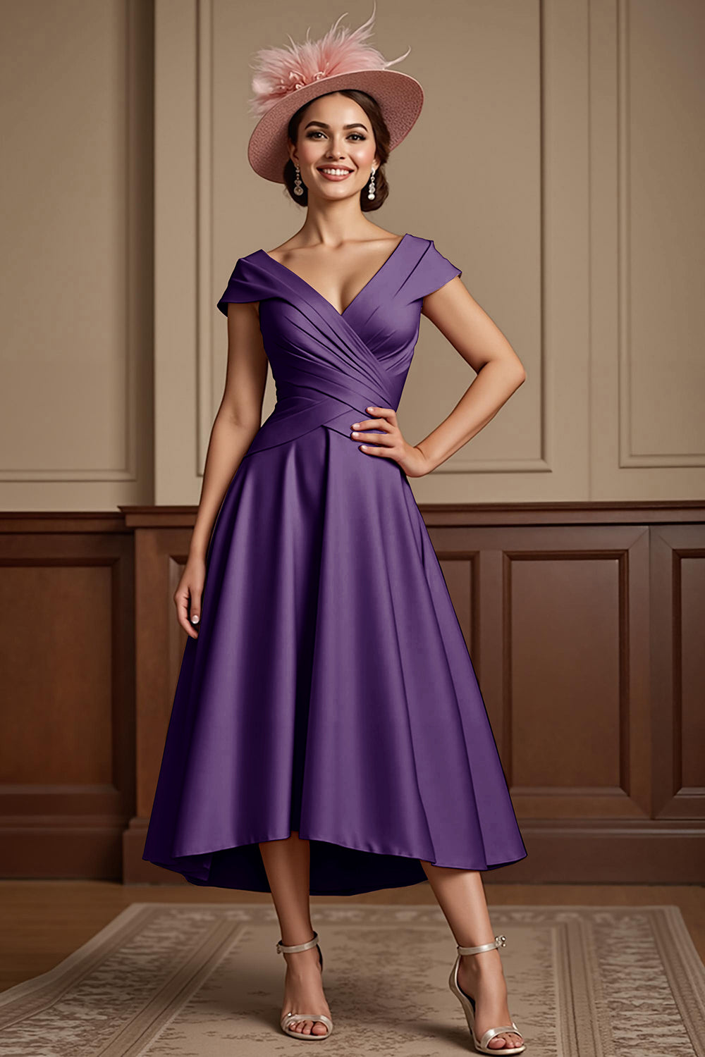 Dusty Rose A Line Midi Mother Of The Bride Dress