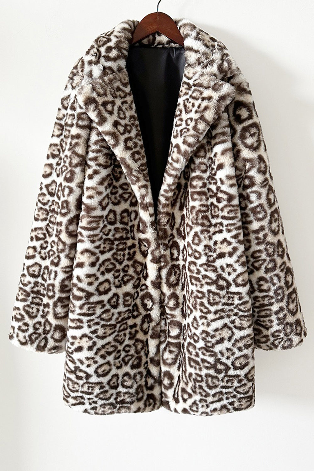 Faux Fur Thickened Lapel Brown Leopard Women Coat