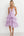 Pink A Line Tulle Tiered Ruffles Formal Dress with Short Sleeves