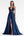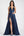 Navy Halter A Line Satin Long Prom Dress with Slit