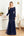 Navy Mermaid Ruched V Neck Gala Dress with Slit