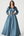 Blue A Line Flared Front Button Closures Mid Length Formal Dress with Long Sleeves
