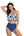 Blue Spaghetti Straps One Piece Print Floral High Waist Swimsuit