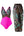 Pink Fuchsia Color Block High Waisted Twist Front Two Piece Swimsuits
