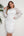 Sparkly White V-Neck Open Back Bodycon Dress With Long Sleeves