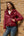 Burgundy Printed Stand Collar Pull Over Fleece Tops