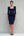 Navy Ruffled Square Neck Sheath Midi Work Dress