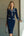 Navy Satin Notched Lapel Pencil Midi Work Blazer Dress with Sleeves