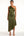 Pine Sheath V Neck Ruched Midi Wedding Guest Dress with Lace