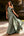 Olive V Neck Velvet Ruched Long Formal Dress with Slit