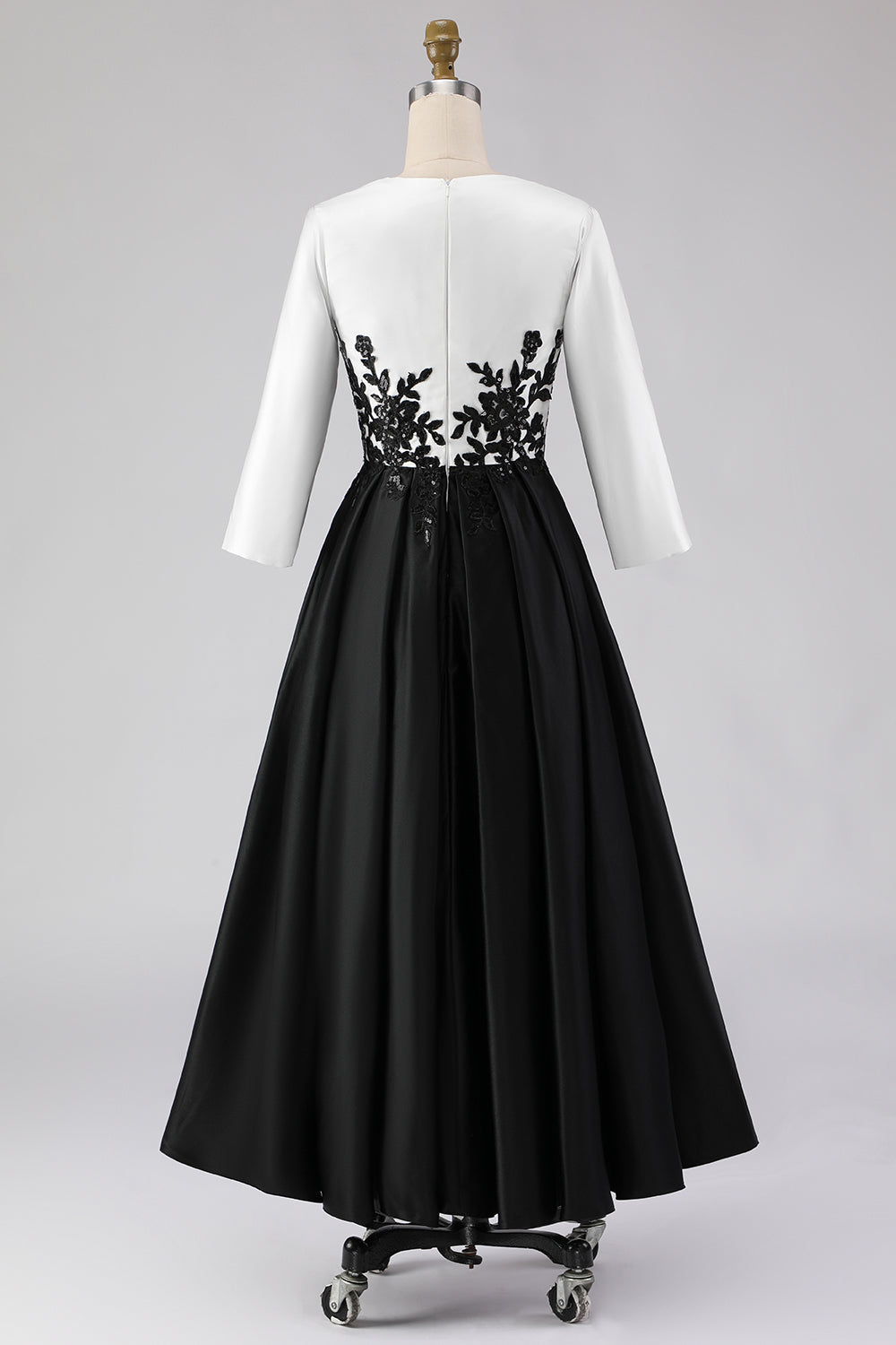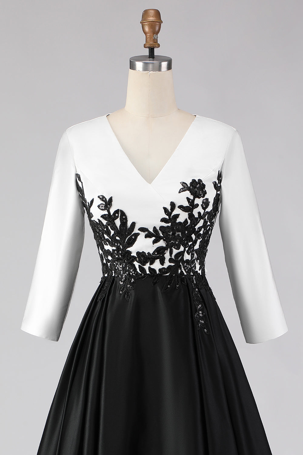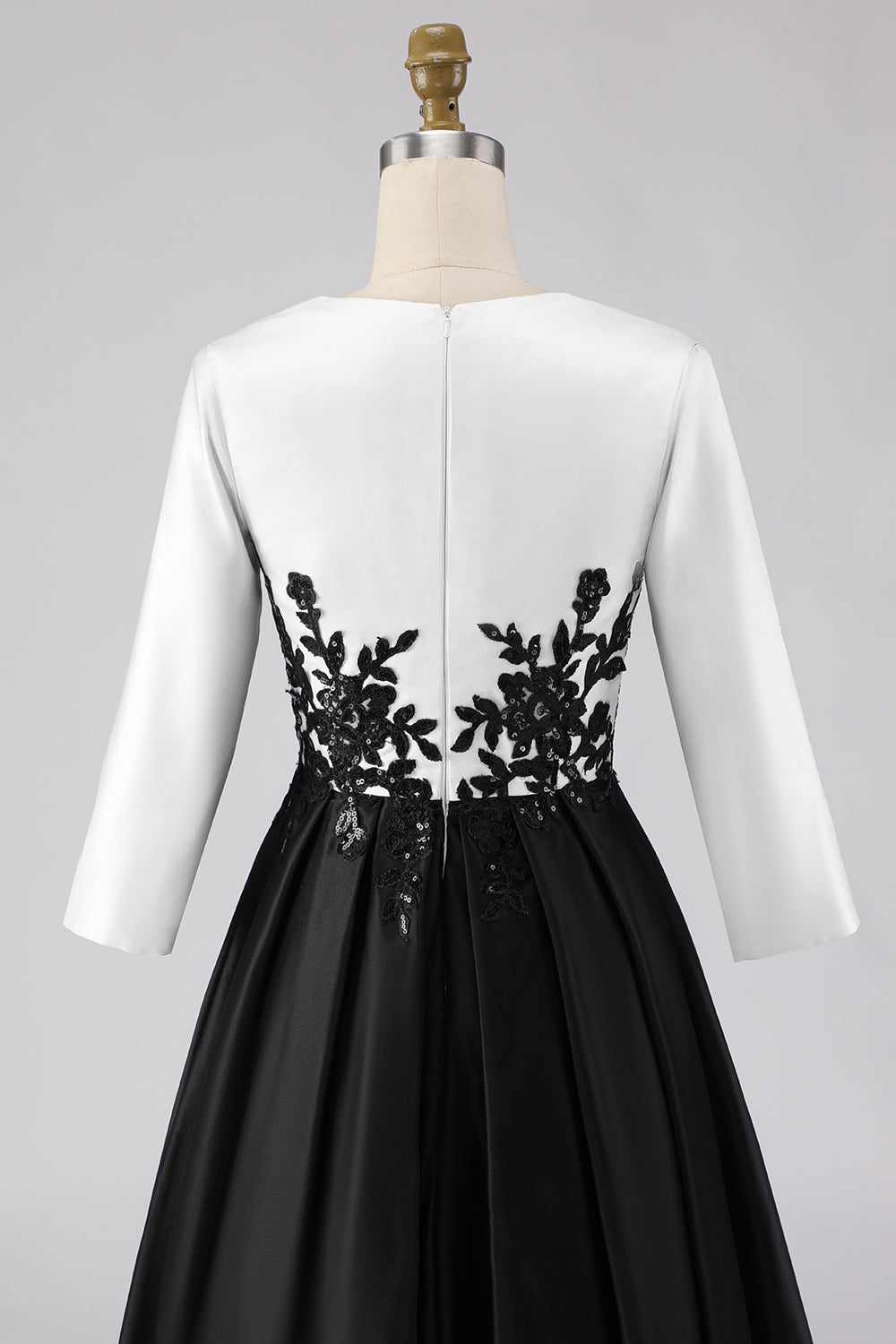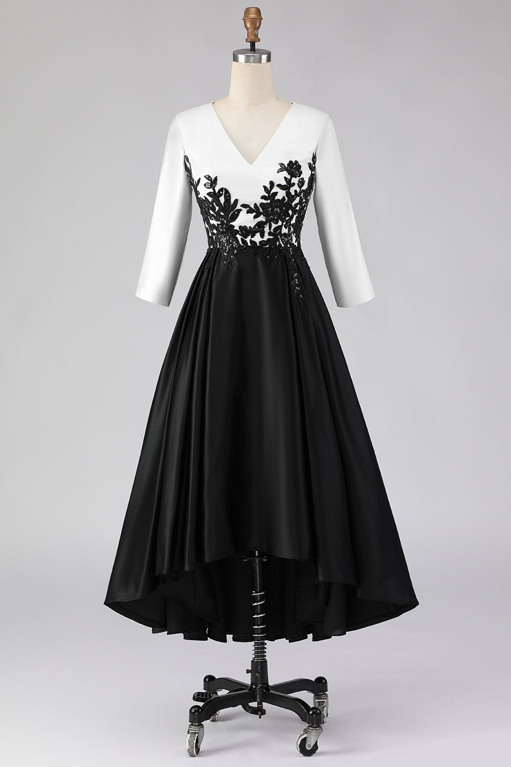 Black and White High Low A Line Mother of the Bride Dress wth Appliques