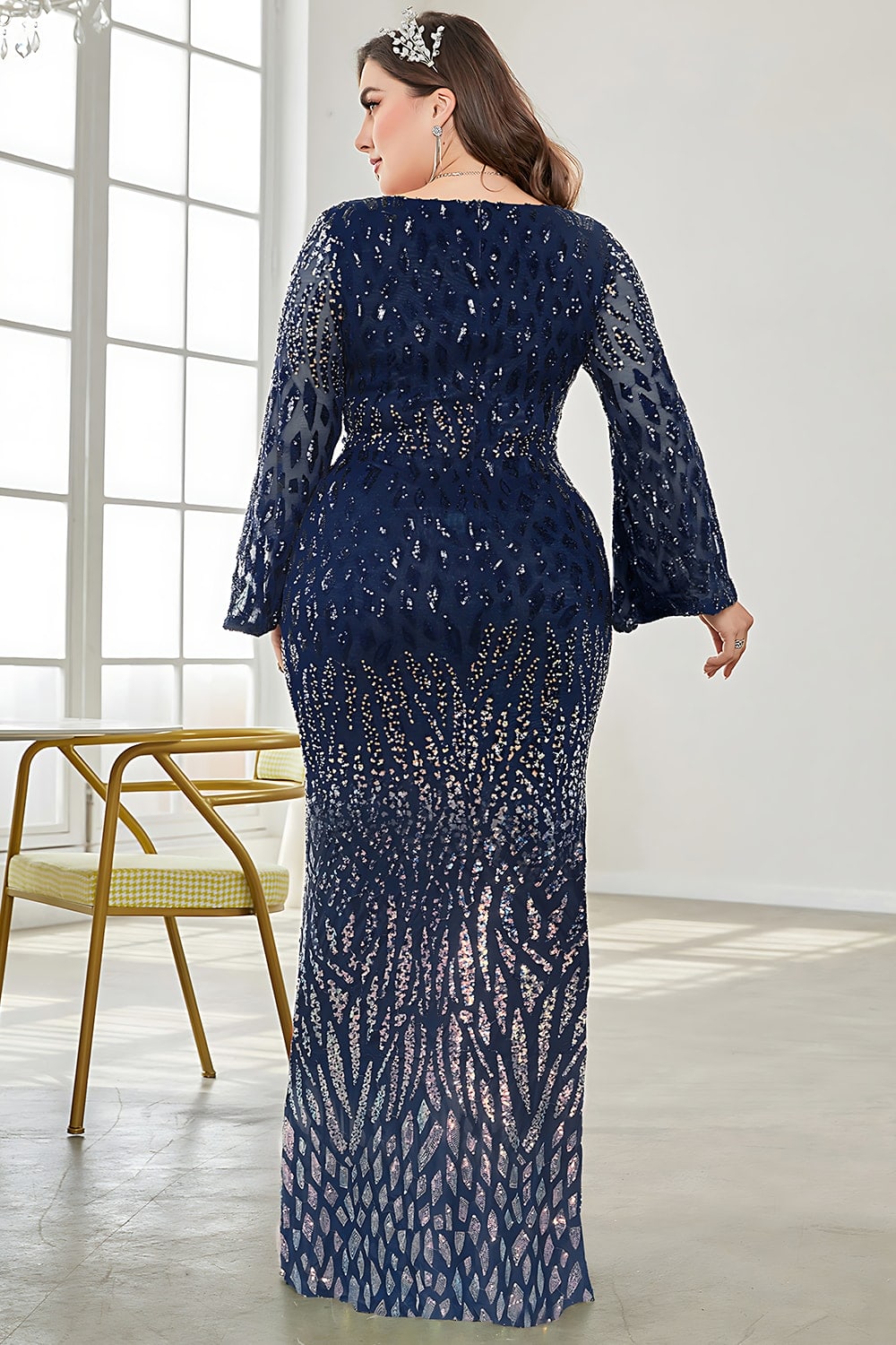 Black Sequin V-Neck Plus Size Mother of the Bride Dress