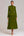 Dark Olive Satin Boat Neck Pencil Midi Work Dress With Sleeves