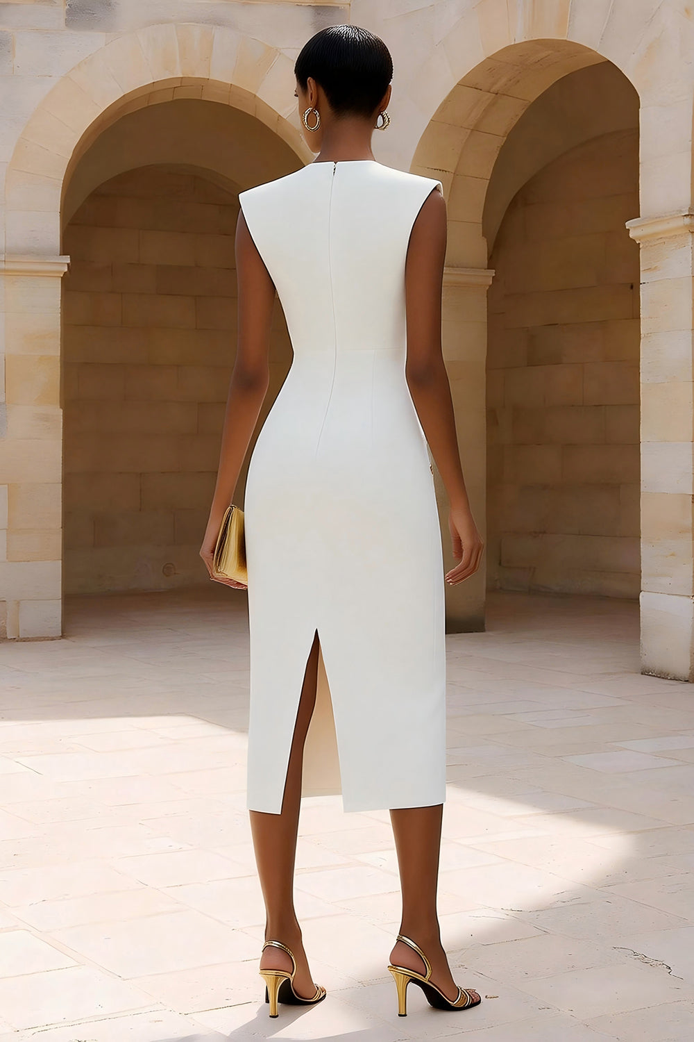 Ivory Satin Bateau Neck Mermaid Double Breasted Work Dress